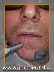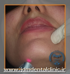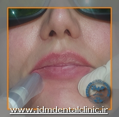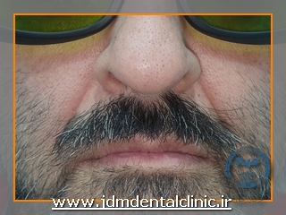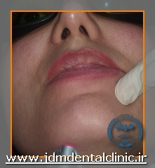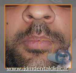 نمونه درمان با لیزر پاراستزی ناشی از جراحی ایمپلنت در ناحیه سمت راست لب: