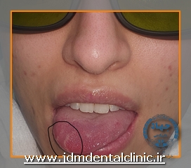 نمونه درمان با لیزر پاراستزی ناشی از جراحی دندان نهفته در ناحیه سمت راست زبان: